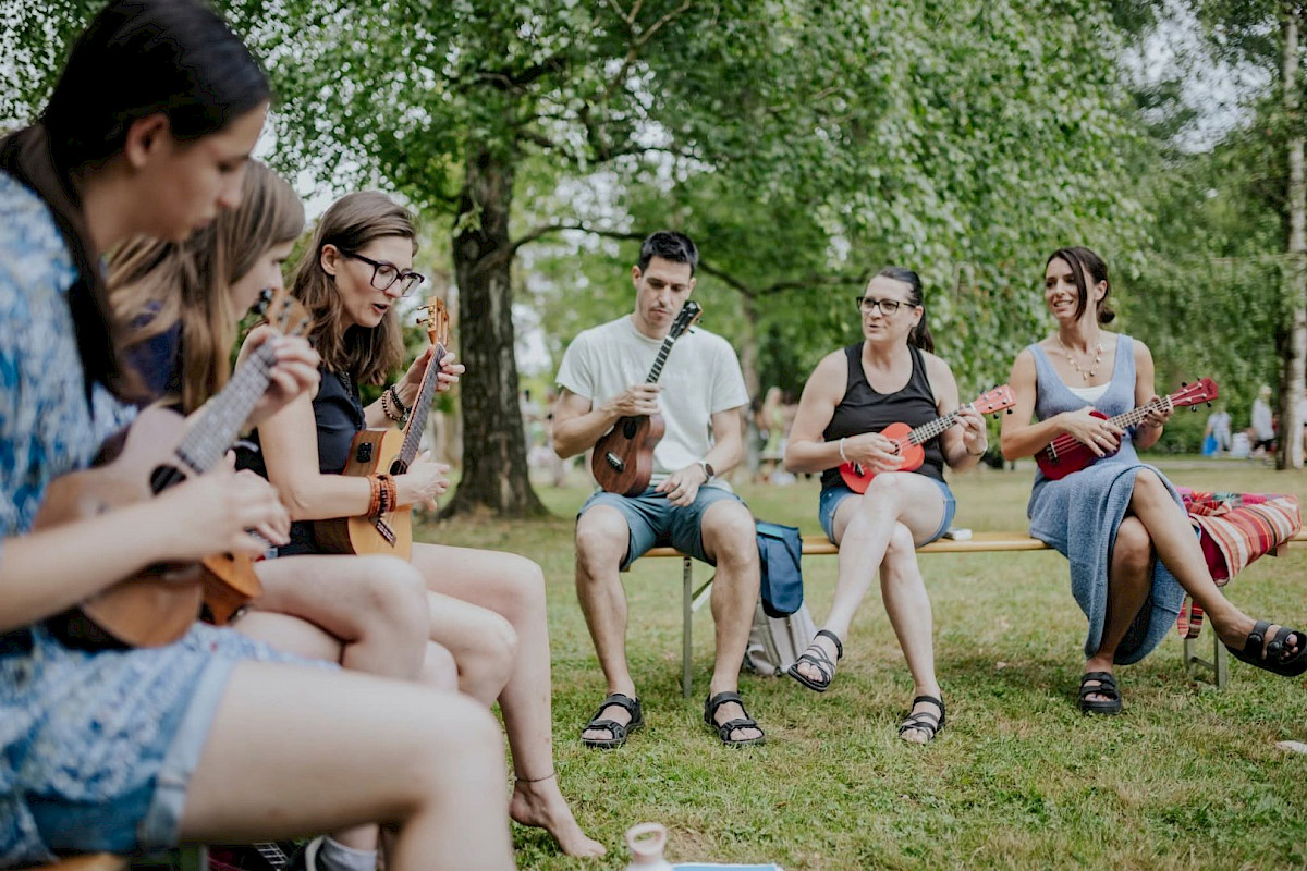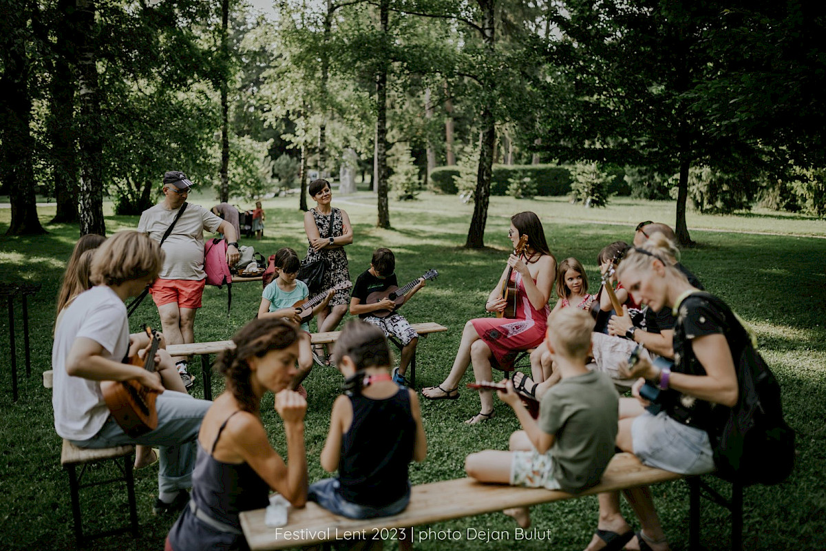 The workshop is led by Tajana No Stres, an exclusive ukulele artist for the Slovenian music brand Flight, one of the world's leading ukulele brands, and a driving force behind the preservation and spread of ukulele culture in Slovenia. She has been inspiring beginners throughout Slovenia for years with her energetic and entertaining ukulele workshops. In 2024, she was invited to the United States, where she conducted workshops at two ukulele festivals—Mighty Uke Day (Michigan) and Ashokan Uke Fest (New York).